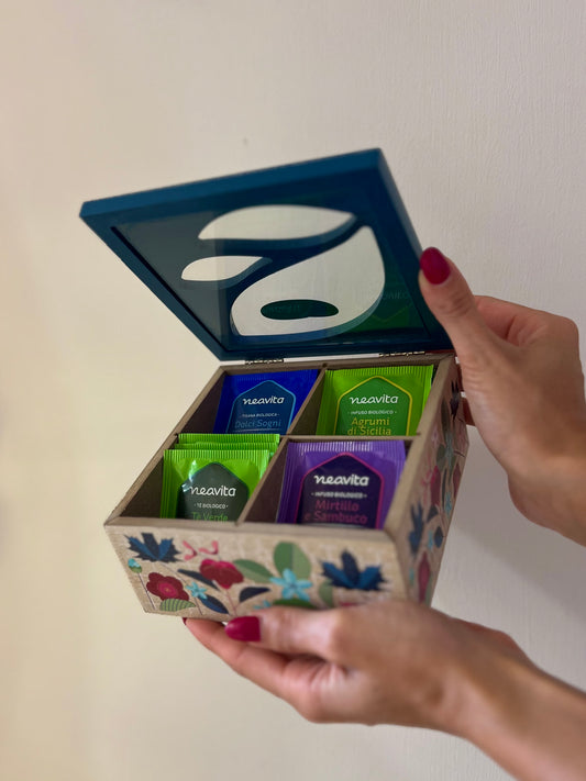 COFANETTO IN LEGNO 4 SCOMPARTI, 20 INFUSI-BLU