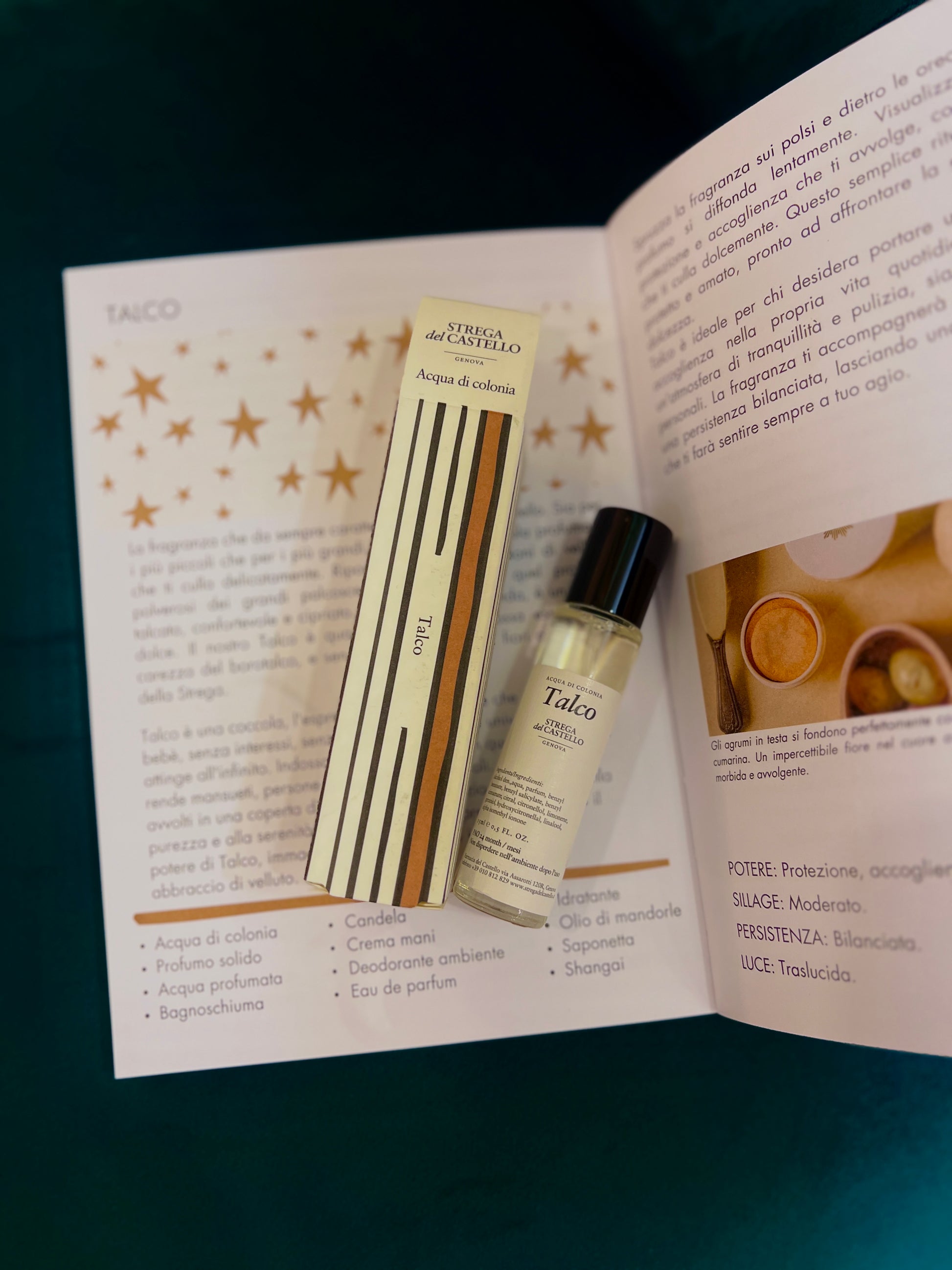 Il nostro Talco è quanto di più simile possa esserci alla carezza del borotalco, e senza dubbio è uno dei fiori all’occhiello della Strega.
