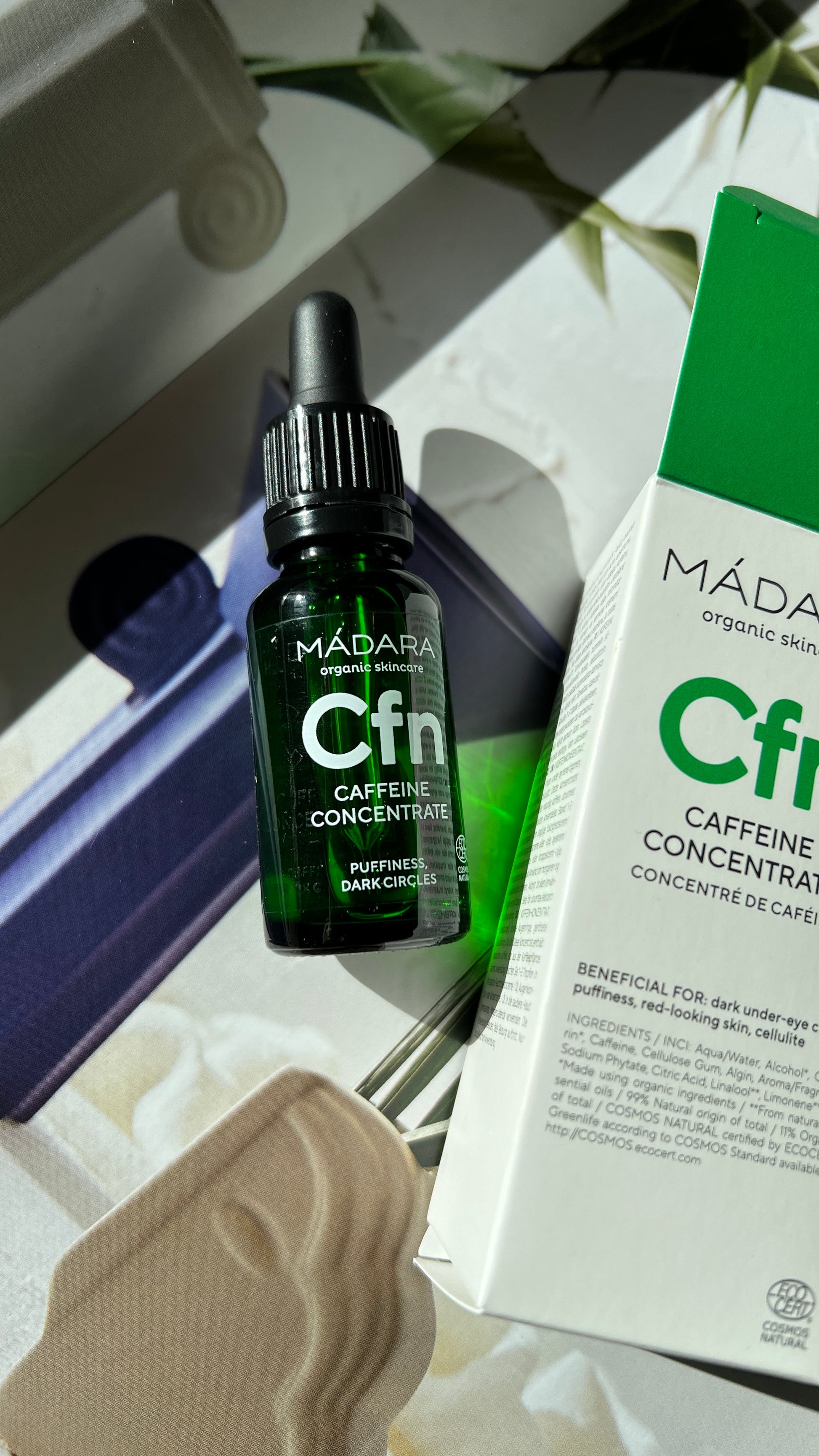 Questo concentrato contiene caffeina naturale, ottenuta dalla pianta del caffè. La caffeina stimola la micro circolazione e la detossinazione a favore di un incarnato più fresco e luminoso. La caffeina è un vasocostrittore, quindi se applicata nella zona del contorno occhi rende meno visibili i capillari sotto pelle che causano le occhiaie scure e favorisce il drenaggio dei liquidi. La caffeina ha delle proprietà anti-infiammatorie è in grado di rimuovere il rossore e l’infiammazione, migliorando la circolazione sanguigna nella zona di applicazione. Benefica come trattamento anti-cellulite aiuta il corpo a bruciare i depositi di tessuto adiposo.