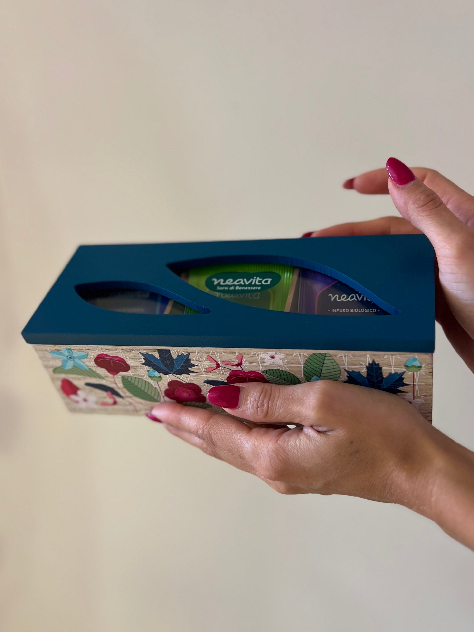 COFANETTO IN LEGNO 3 SCOMPARTI, 15 INFUSI-BLU