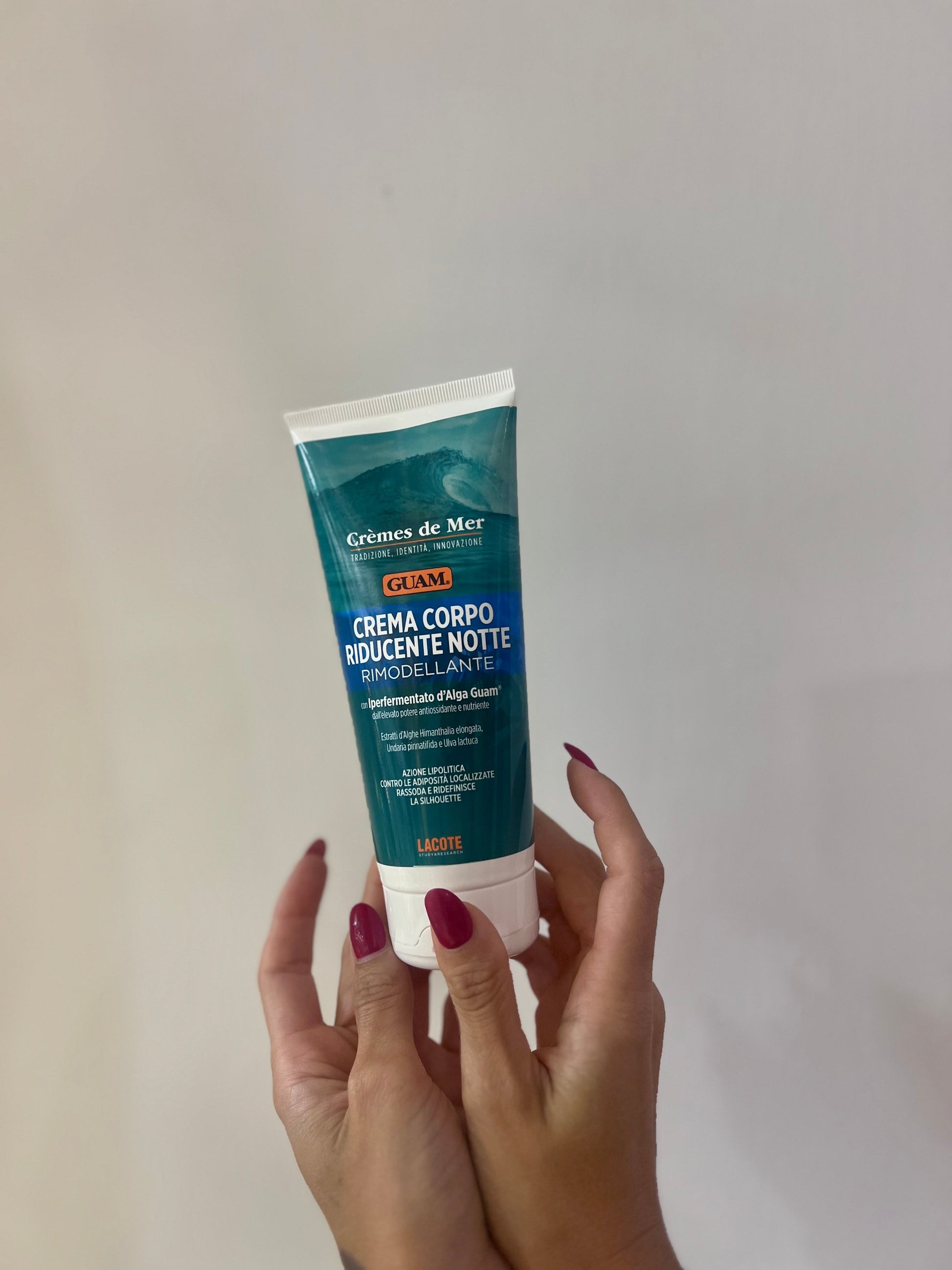 La crema corpo riducente notte rimodellante è stata formulata per sprigionare la sua azione lipolitica e rassodante durante il riposo notturno. Contiene ingredienti di origine naturali tra I quali l’iper fermentato d’alga Guam, in grado di migliorare la barriera cutanea con azione antiossidante e protettiva e favorire l’assorbimento delle benefiche proprietà dell’alga marina sulla pelle. Gli estratti dal alghe Himanthalia elongata, Undaria pinnatifida e Uva lactuca lavorano insieme per stimolare il metabolismo cellulare e favorire la riduzione degli inestetismi cutanei e migliorare la tonicità della pelle, rimodellando anche le aree più critiche come pancia, cosce e fianchi, per un aspetto più armonioso.