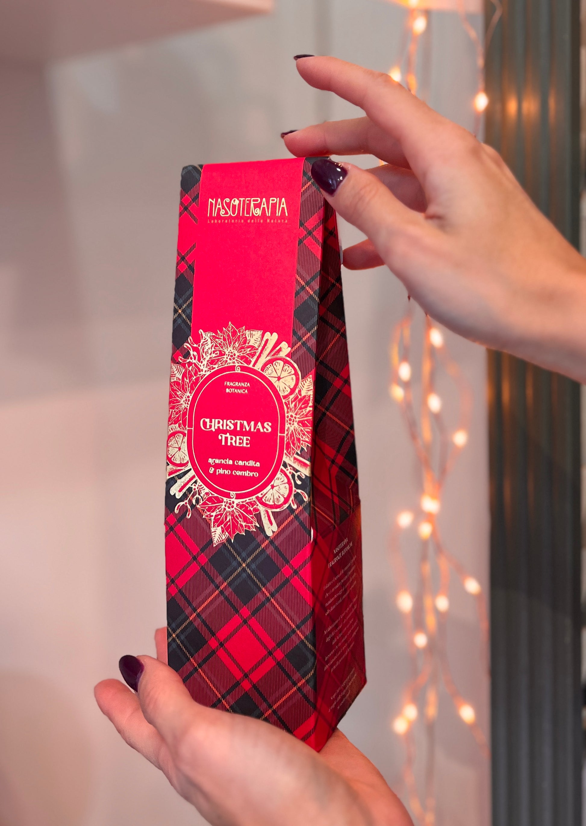 L'attesa del Natale, il periodo dell'anno in cui i ricordi si legano ai profumi e i desideri diventano realtà. Nasoterapia porta nelle case fragranze che racchiudono le note fresche e balsamiche dei boschi d'inverno e quelle dolci e gourmand delle cucine che si preparano alla Festa. Christmas Tree sprigiona, nell'aria, l'Essenza del Natale.