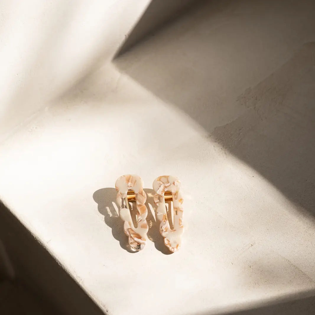 Per incorniciare il tuo viso prima del trucco o per completare il tuo look. Le mollette firmate PEIGNÉE Paris sono l'accessorio per capelli dell'estate 2025.