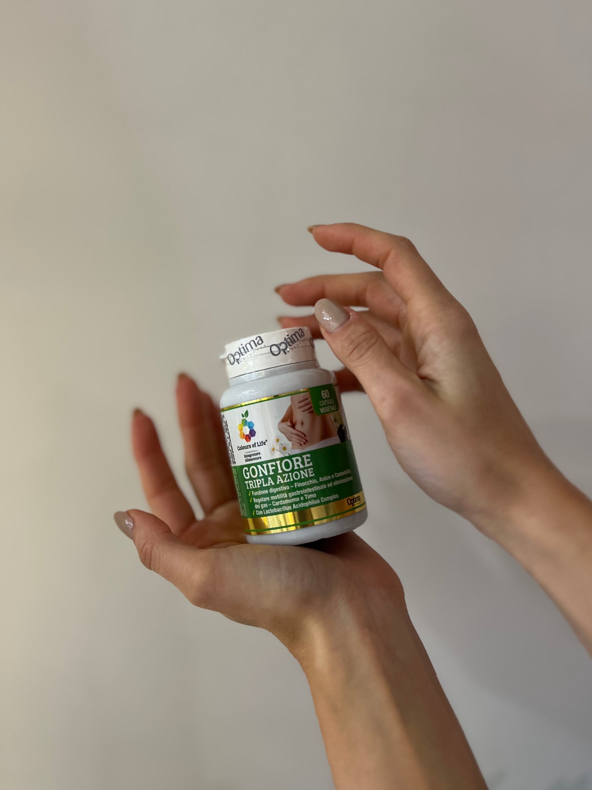Integratore alimentare in capsule vegetali a base di carbone attivo ed estratti vegetali, con probiotici. Contribuisce a ridurre la sensazione di gonfiore addominale e riequilibra il tratto gastro-intestinale.
