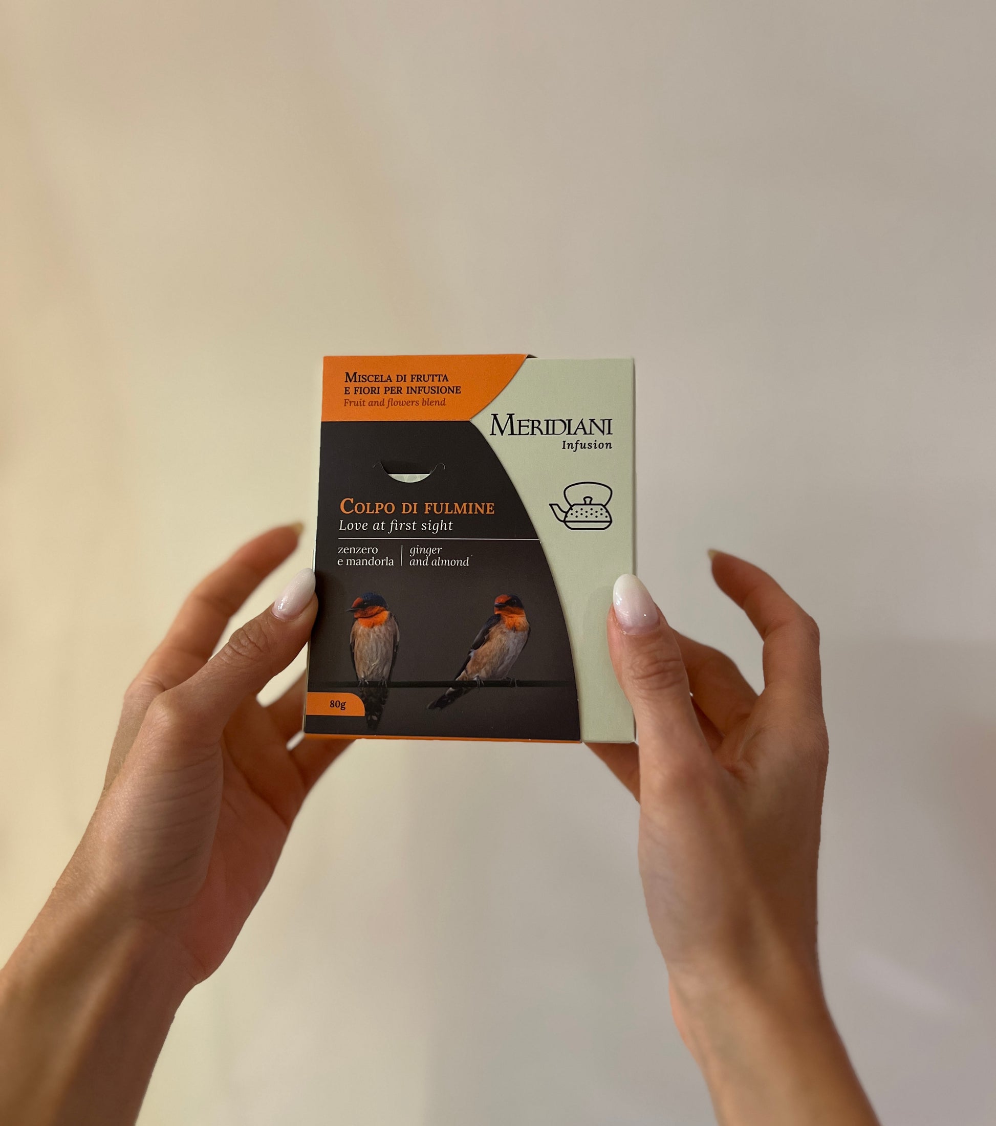 Infuso mandorla e zenzero. Secondo Platone sarà un colpo di fulmine a farci ritrovare la nostra l’esatta metà, quella da cui le divinità malevole ci avevano diviso dalla nascita per mezzo di un altro colpo di fulmine. In questa miscela note dolci e pungenti si fondono perfettamente grazie all’incontro tra mandorla, mela e zenzero. Amore a prima vista.