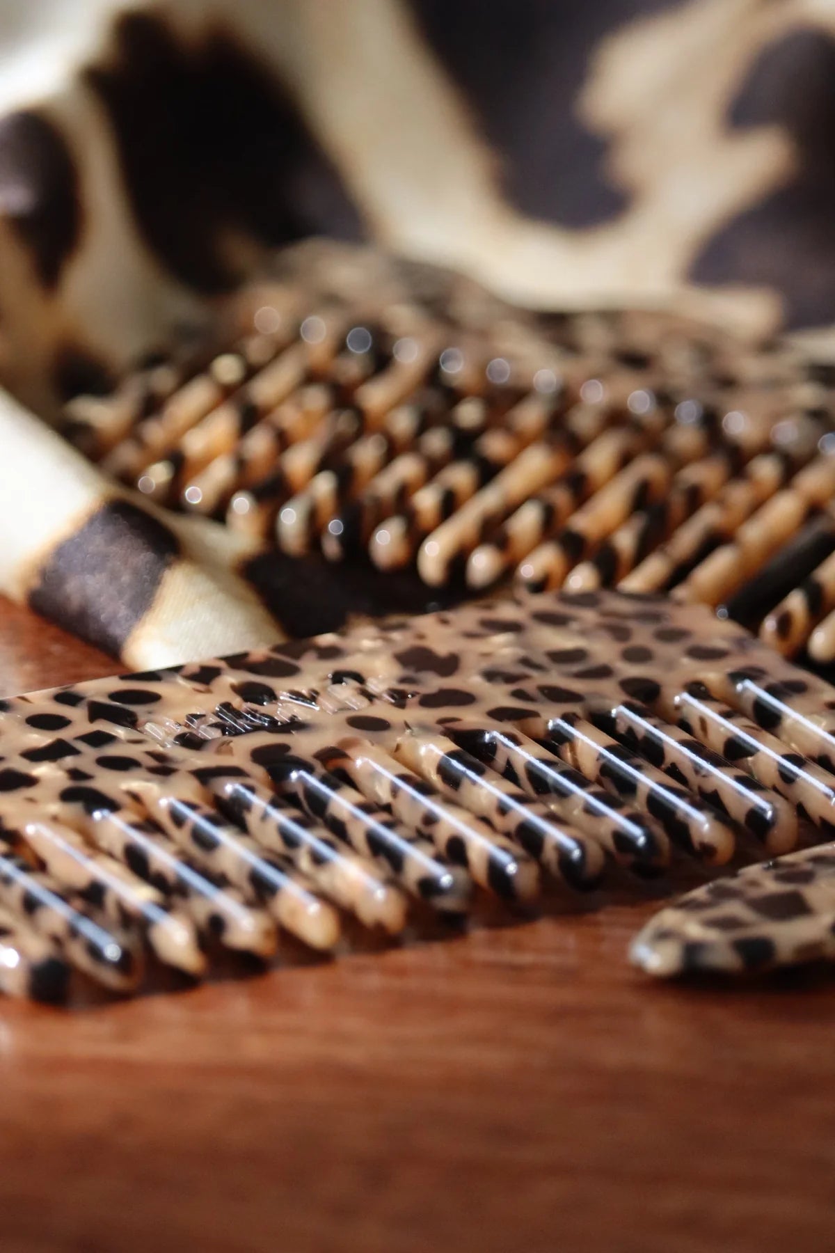 La cellulosa utilizzata per la produzione di pettini e forcine è solitamente una forma di acetato di cellulosa, un materiale derivato da fibre naturali come il cotone o la polpa di legno. Questo materiale è apprezzato per la sua leggerezza, flessibilità e resistenza, oltre a essere altamente lavorabile. L’acetato di cellulosa offre una finitura lucida, un aspetto elegante, e può essere facilmente colorato o decorato con motivi complessi. È anche ipoallergenico e delicato sui capelli, il che lo rende ideale per accessori di bellezza.