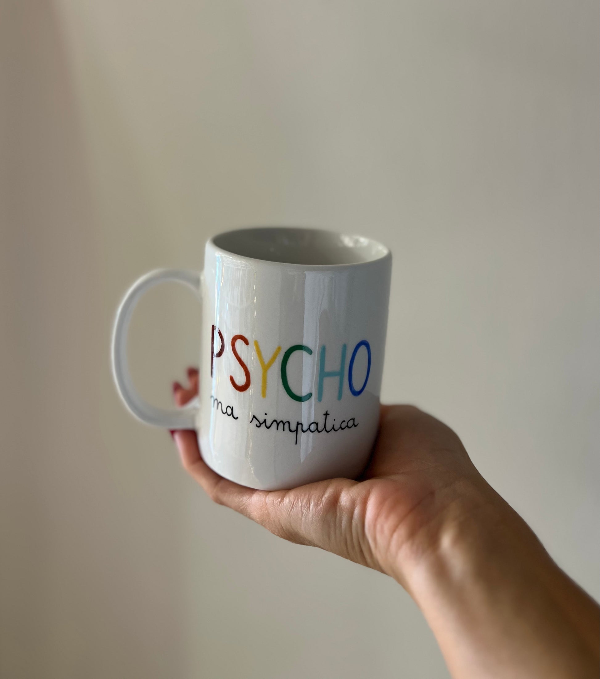 "PSYCHO MA SIMPATICA" MUG CERAMICA DIPINTA A MANO
