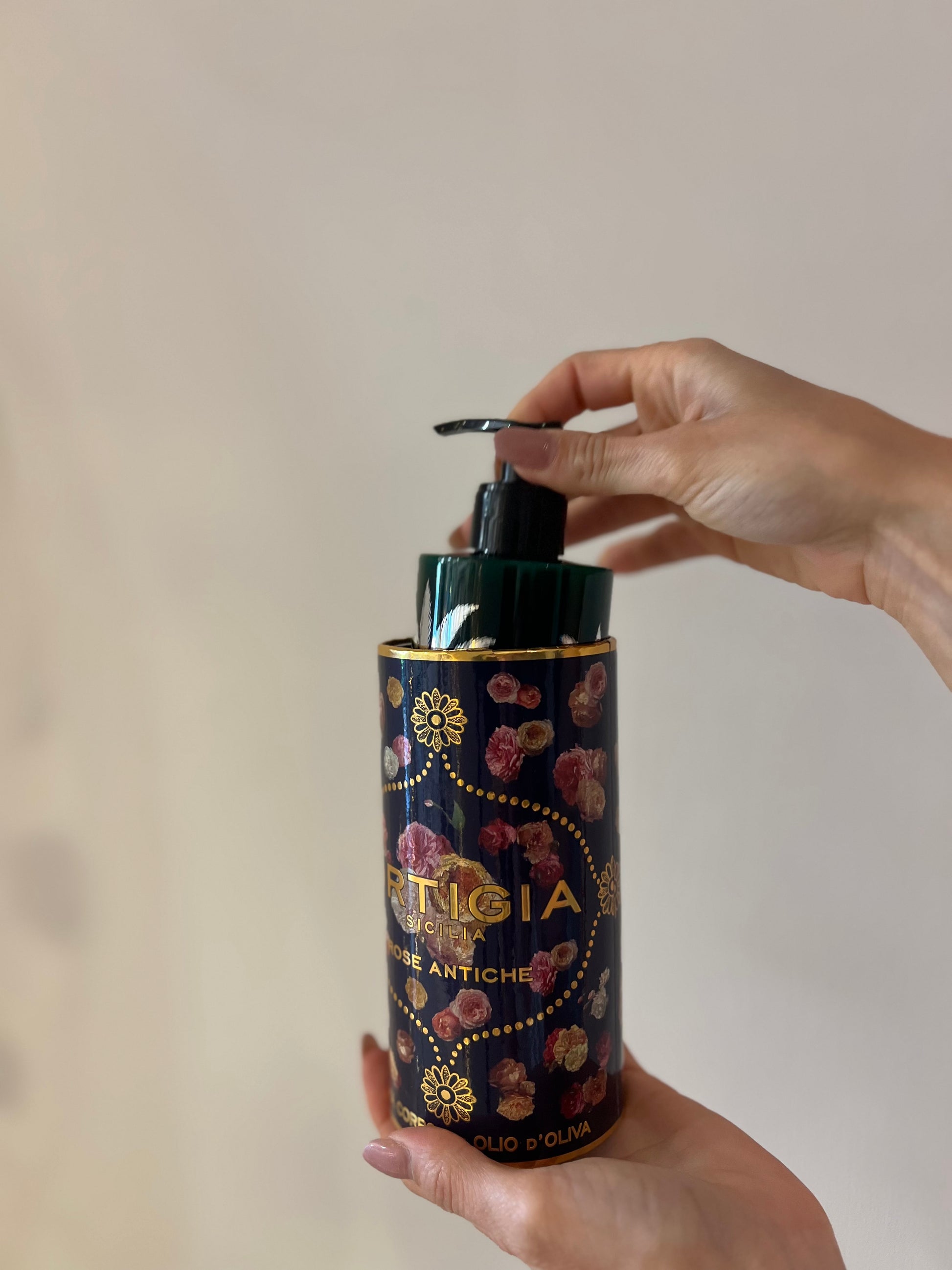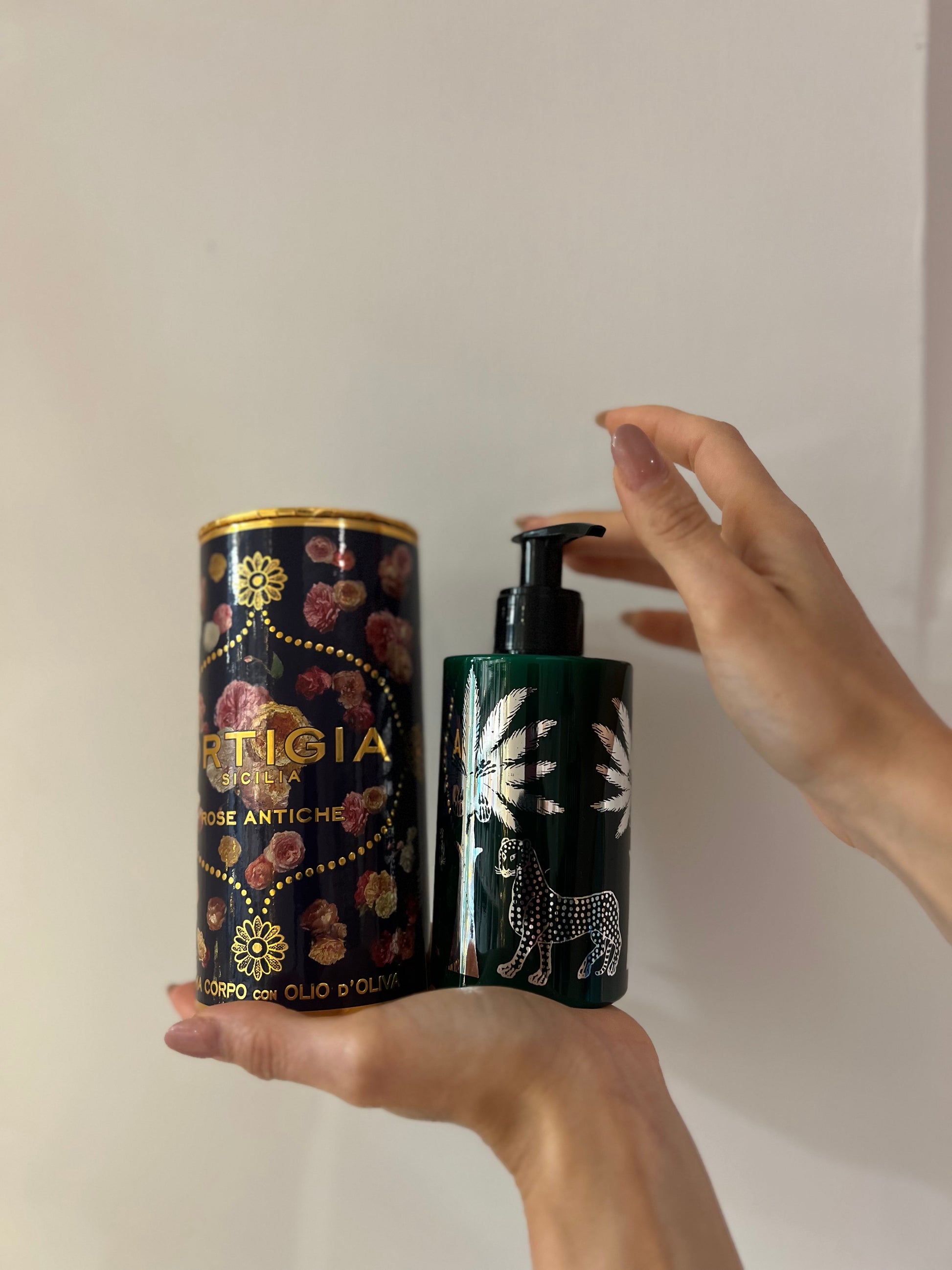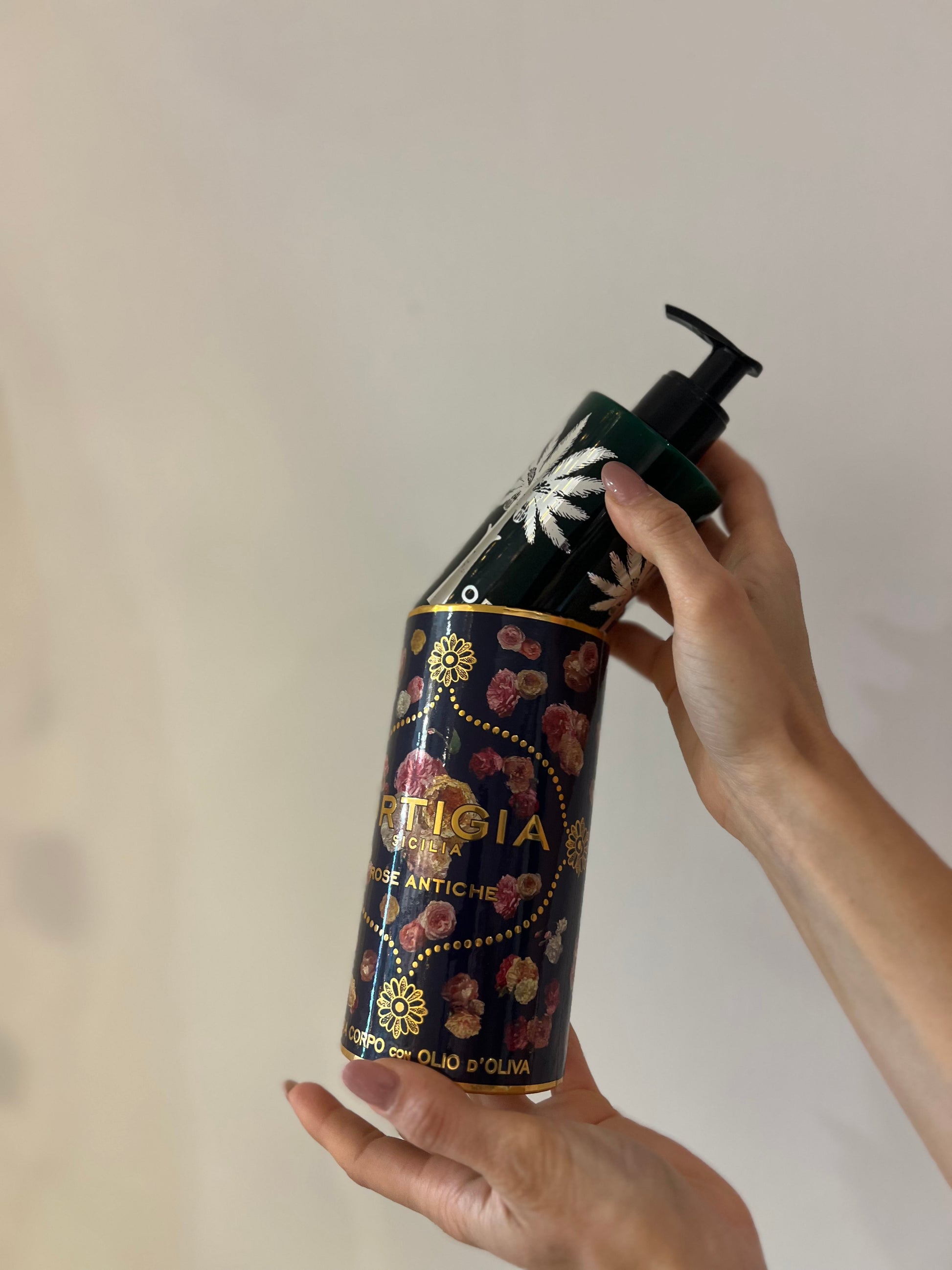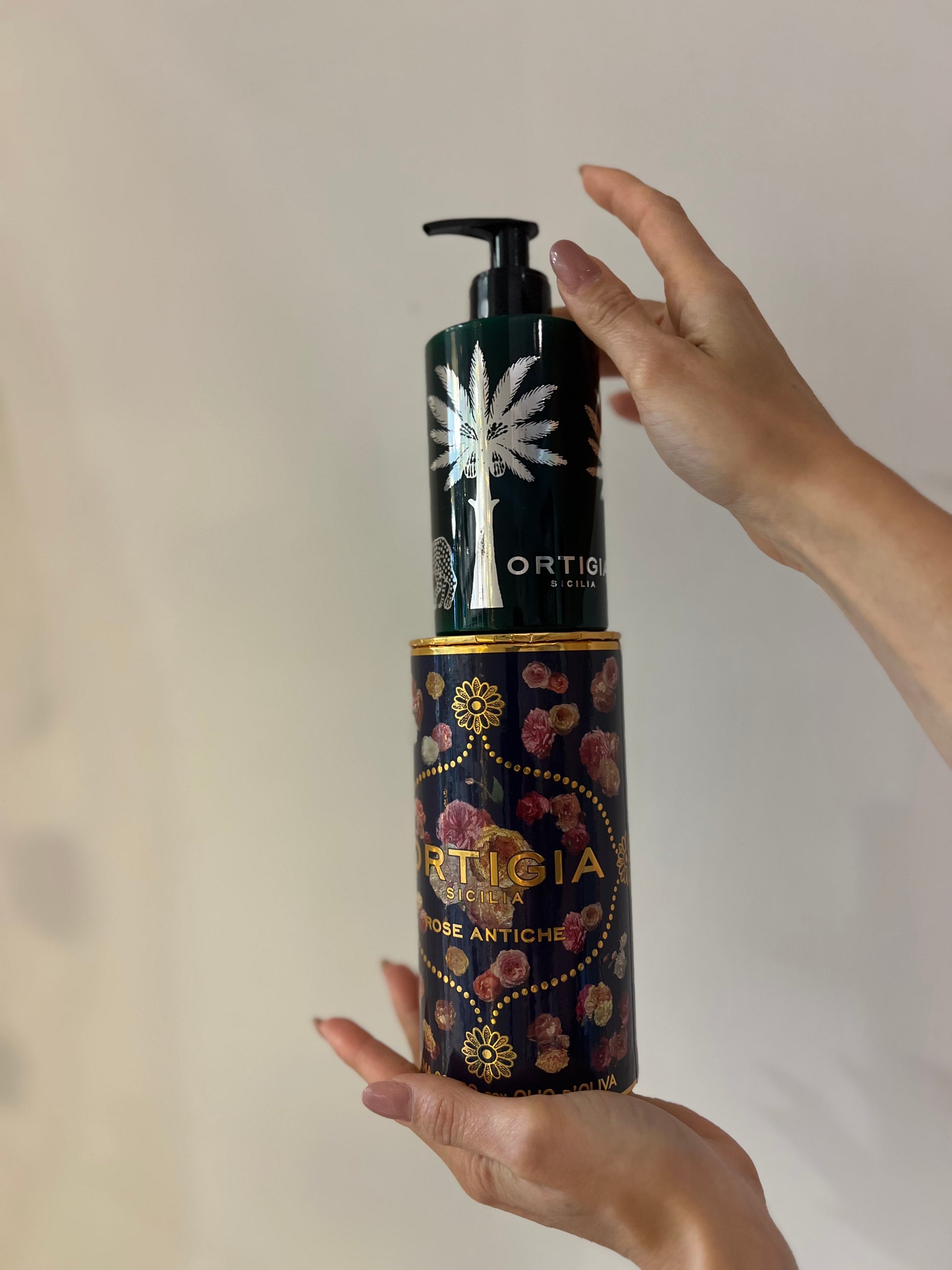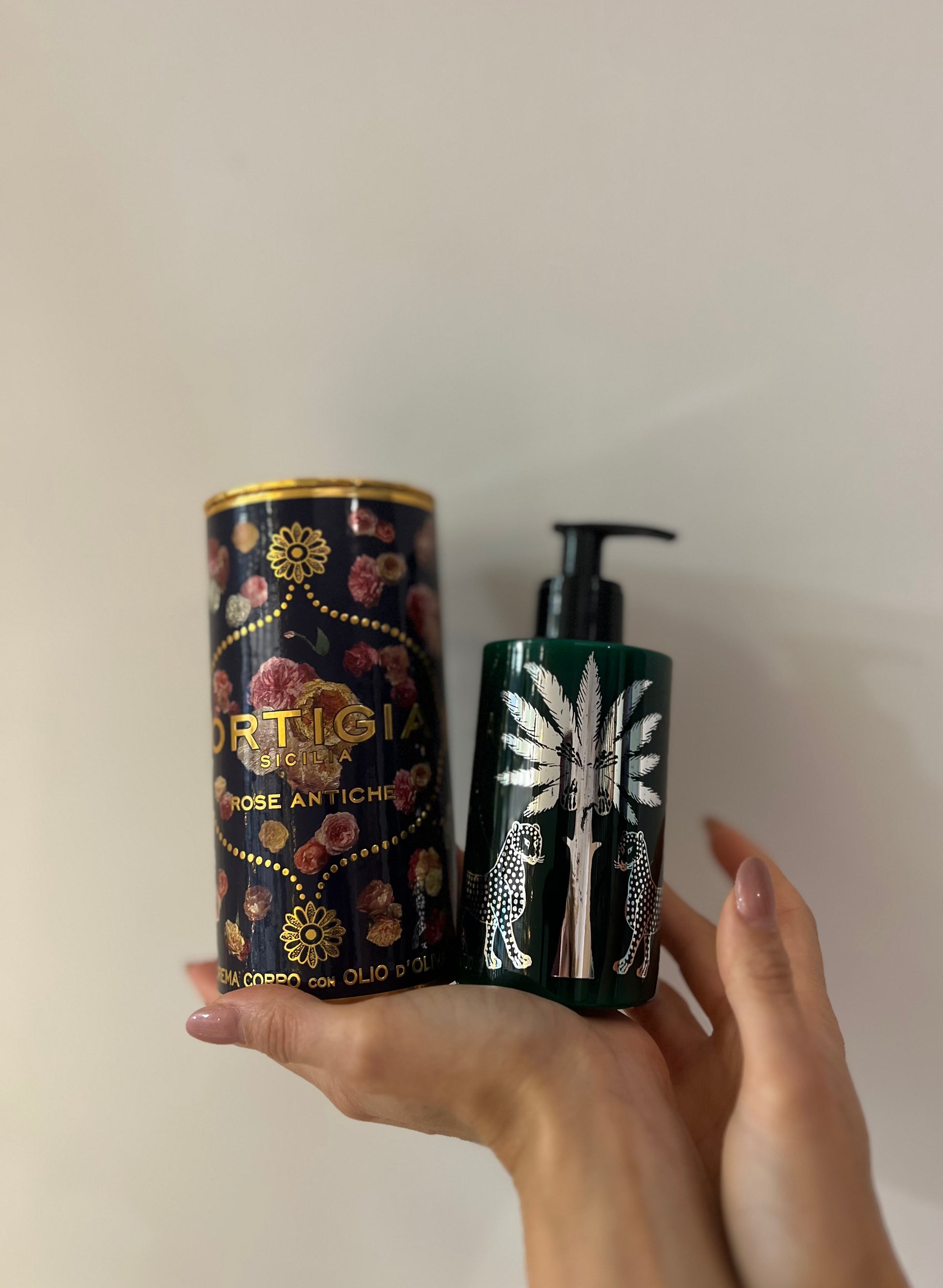 La Crema Corpo Ortigia “Rose Antiche” (300 ml) racchiude tutta l’eleganza e la raffinatezza del marchio siciliano. Leggera e vellutata, la sua formula preziosa con lanolina, olio d’oliva e olio di mandorla nutre in profondità lasciando la pelle morbida, setosa e delicatamente profumata.