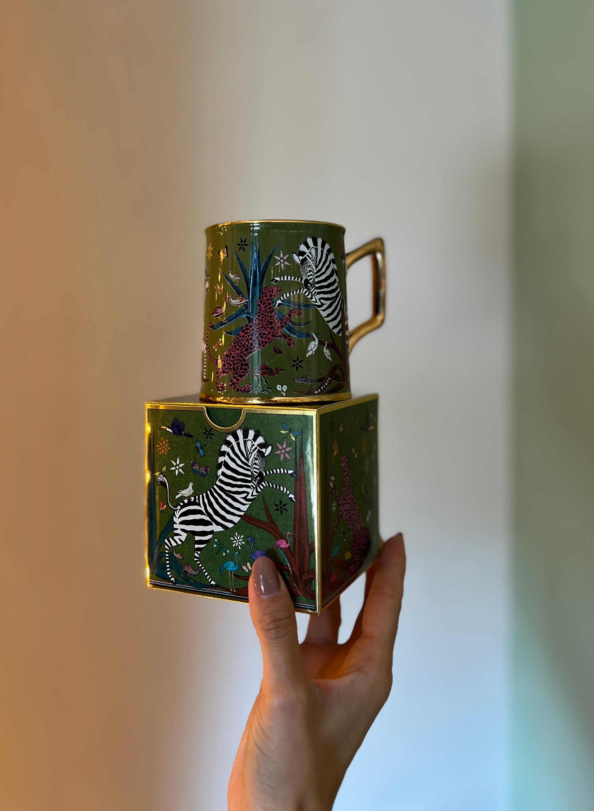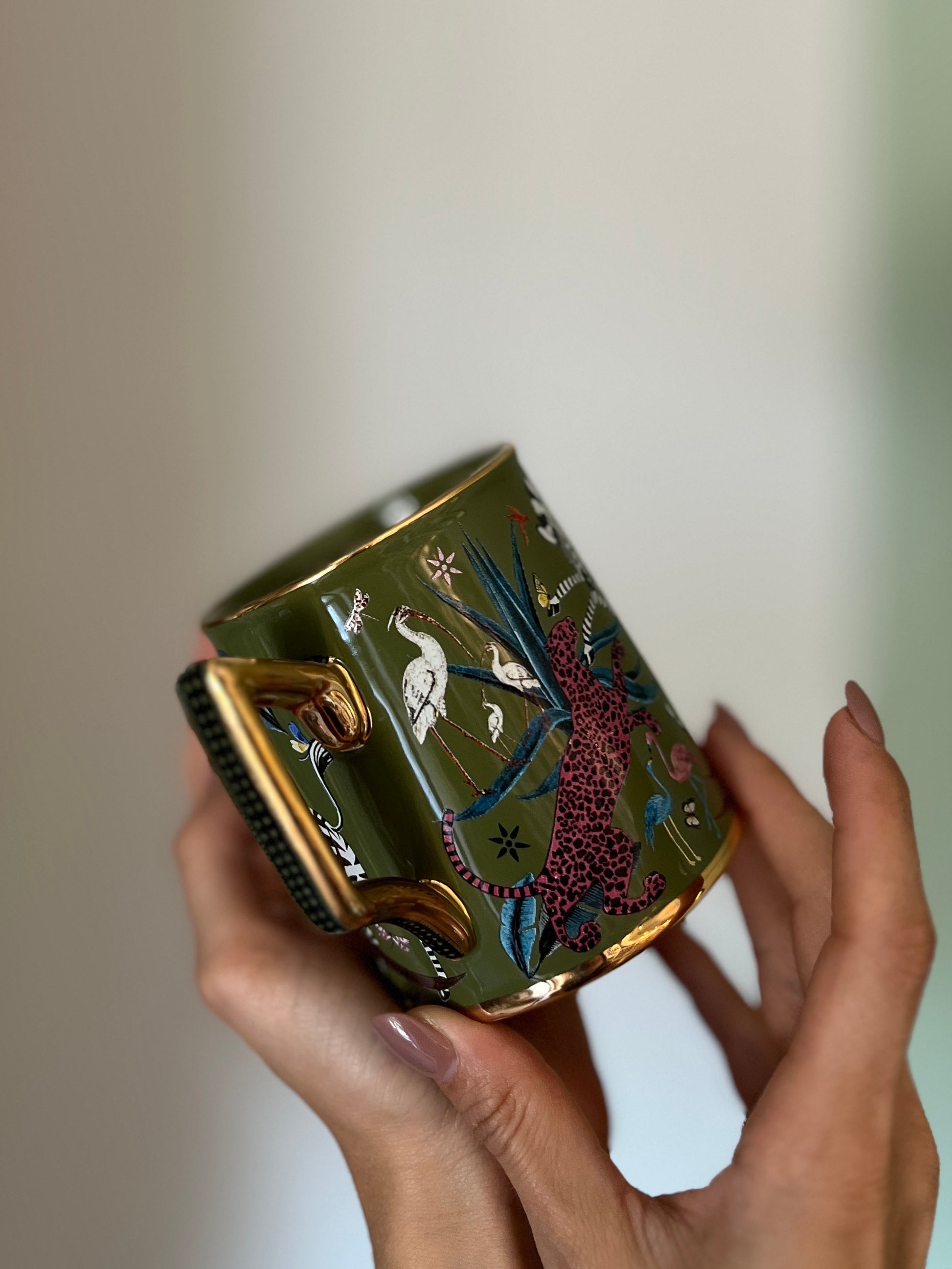 La Tazza in ceramica è realizzata a mano con decorazione serigrafata in oro, raffinata come un gioiello da esporre.