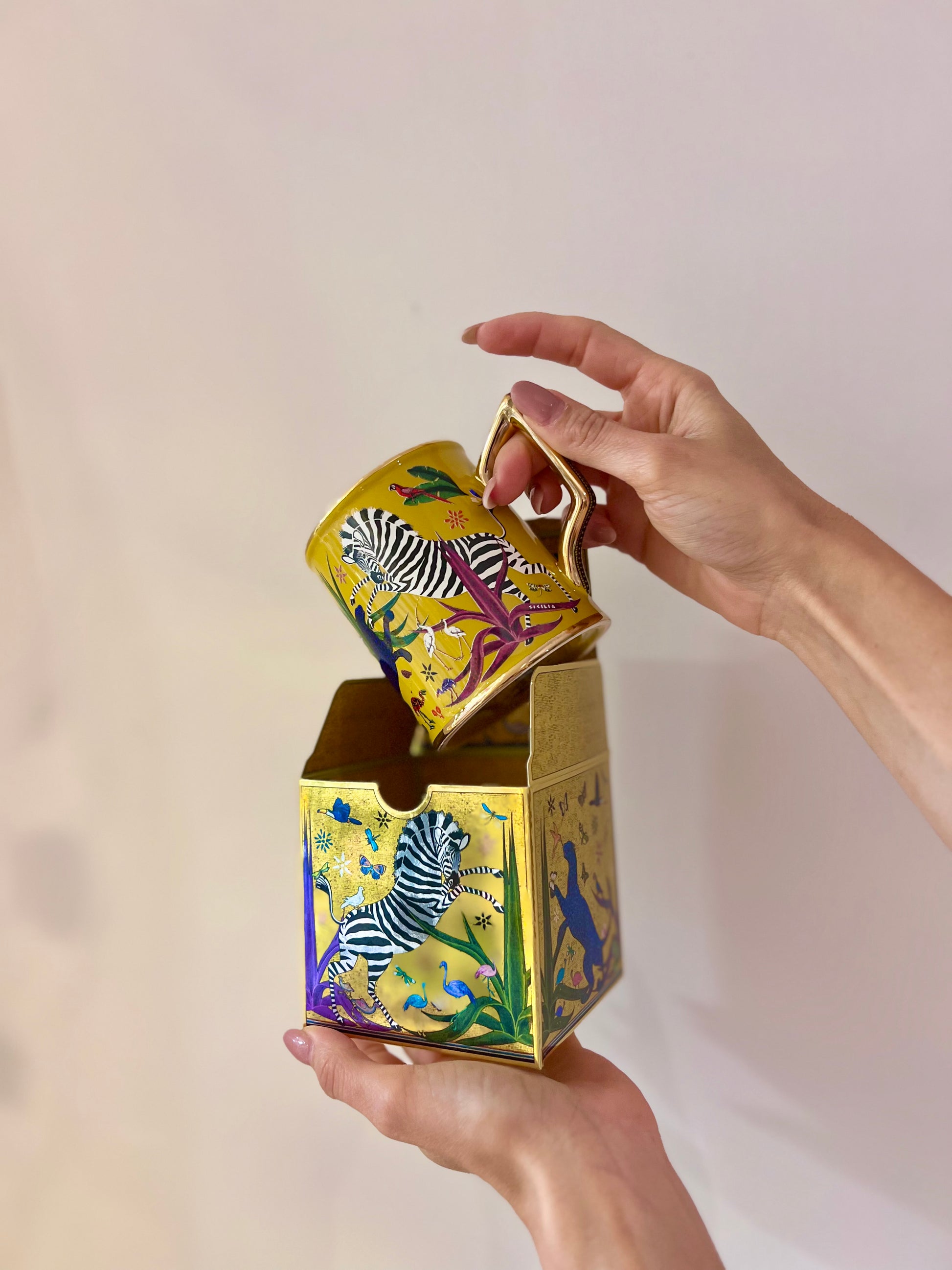 La Tazza in ceramica è realizzata a mano con decorazione serigrafata in oro, raffinata come un gioiello da esporre.
