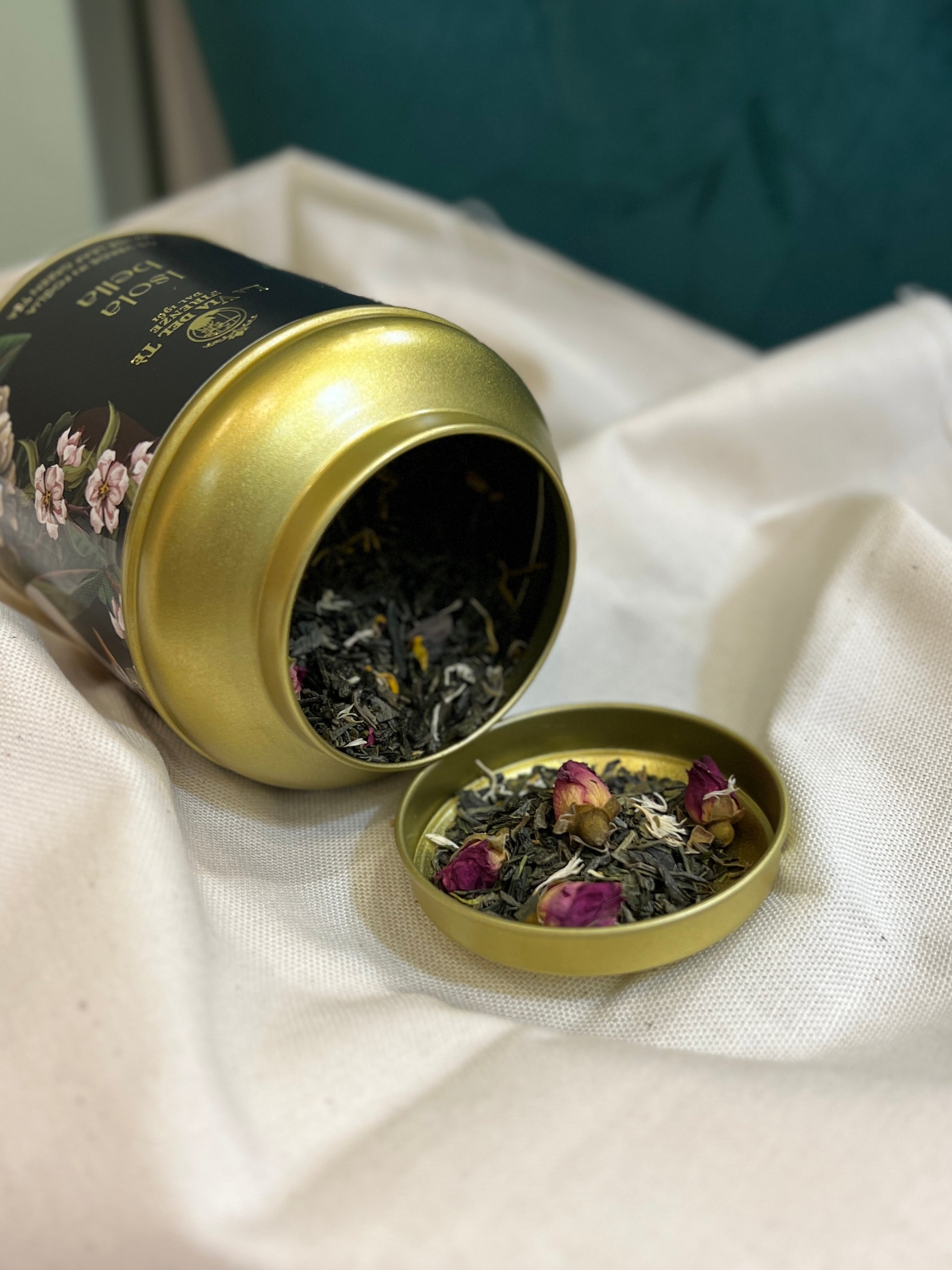 Ingredienti: Tè verdi (Giappone, Cina), Rosa boccioli, aromi naturali, calendula petali, fiordaliso petali