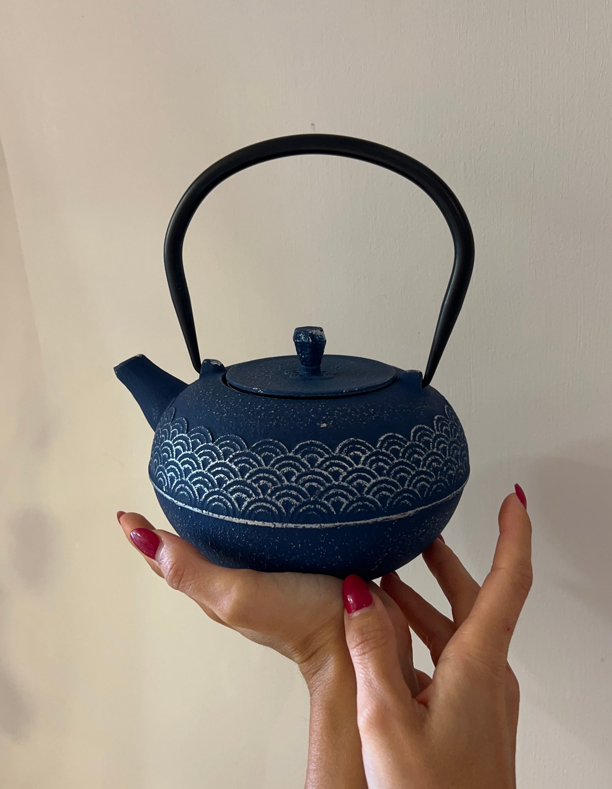 Avvolta in una profonda tonalità blu notte, la teiera in ghisa Nami racchiude l’essenza delle antiche cerimonie del tè giapponesi.