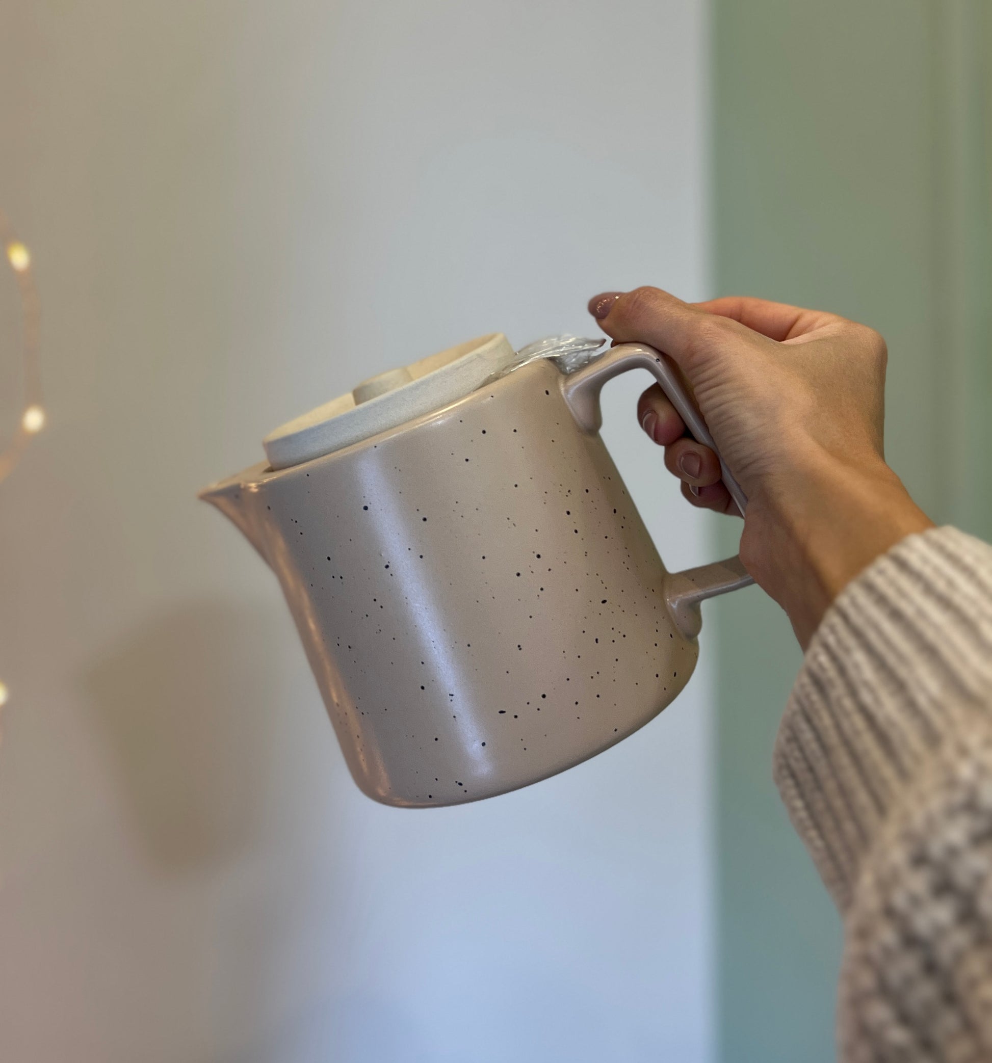 • Manico ampio: Il manico in grès è ergonomico e di dimensioni generose, per una presa comoda e stabile anche quando la teiera è piena.