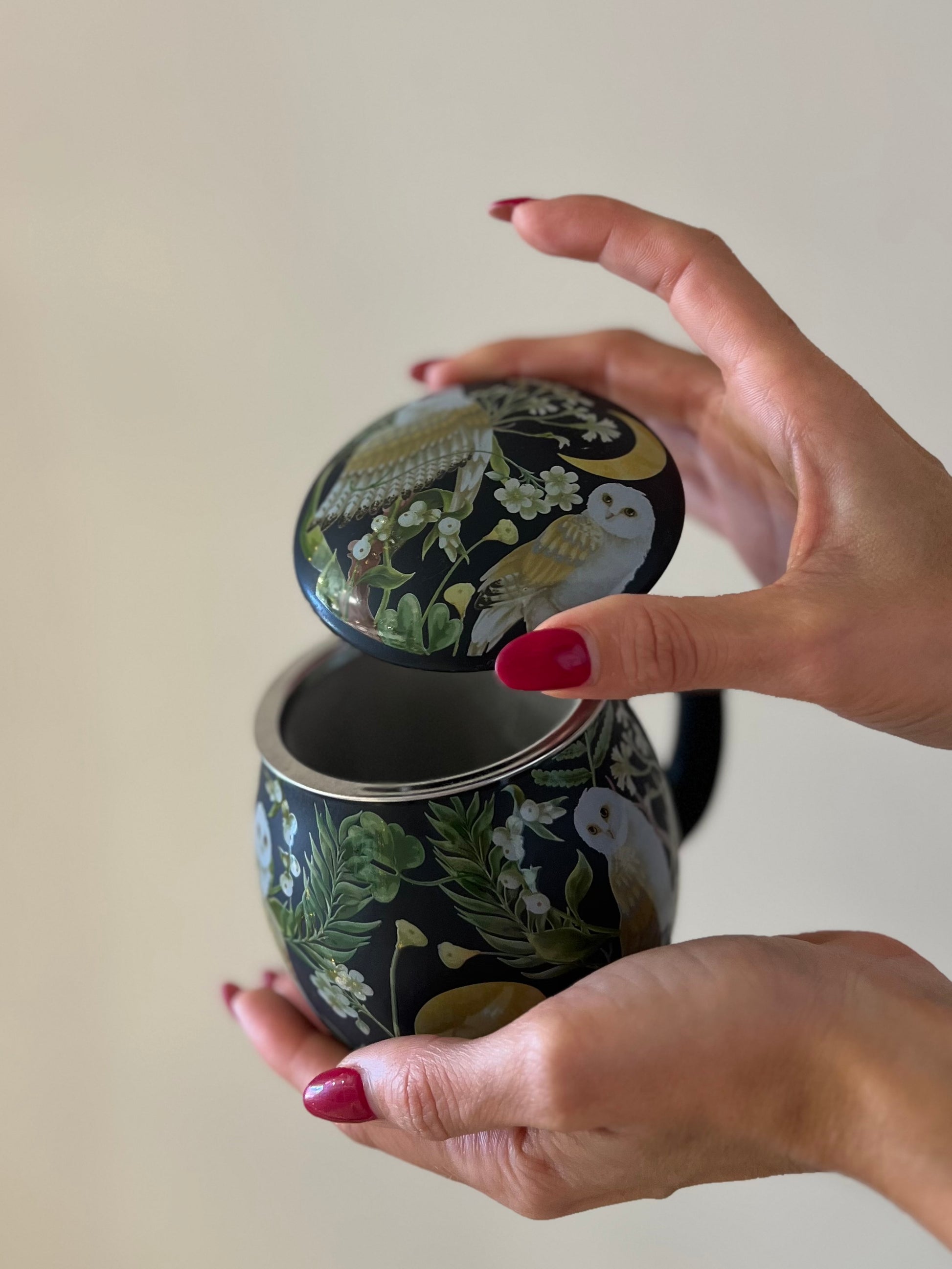 Eleganza e arte si incontrano nella Tisaniera Camilla Birdy – Barbagianni, un piccolo capolavoro in porcellana pensato per rendere ogni momento del tè o della tisana un’esperienza raffinata.