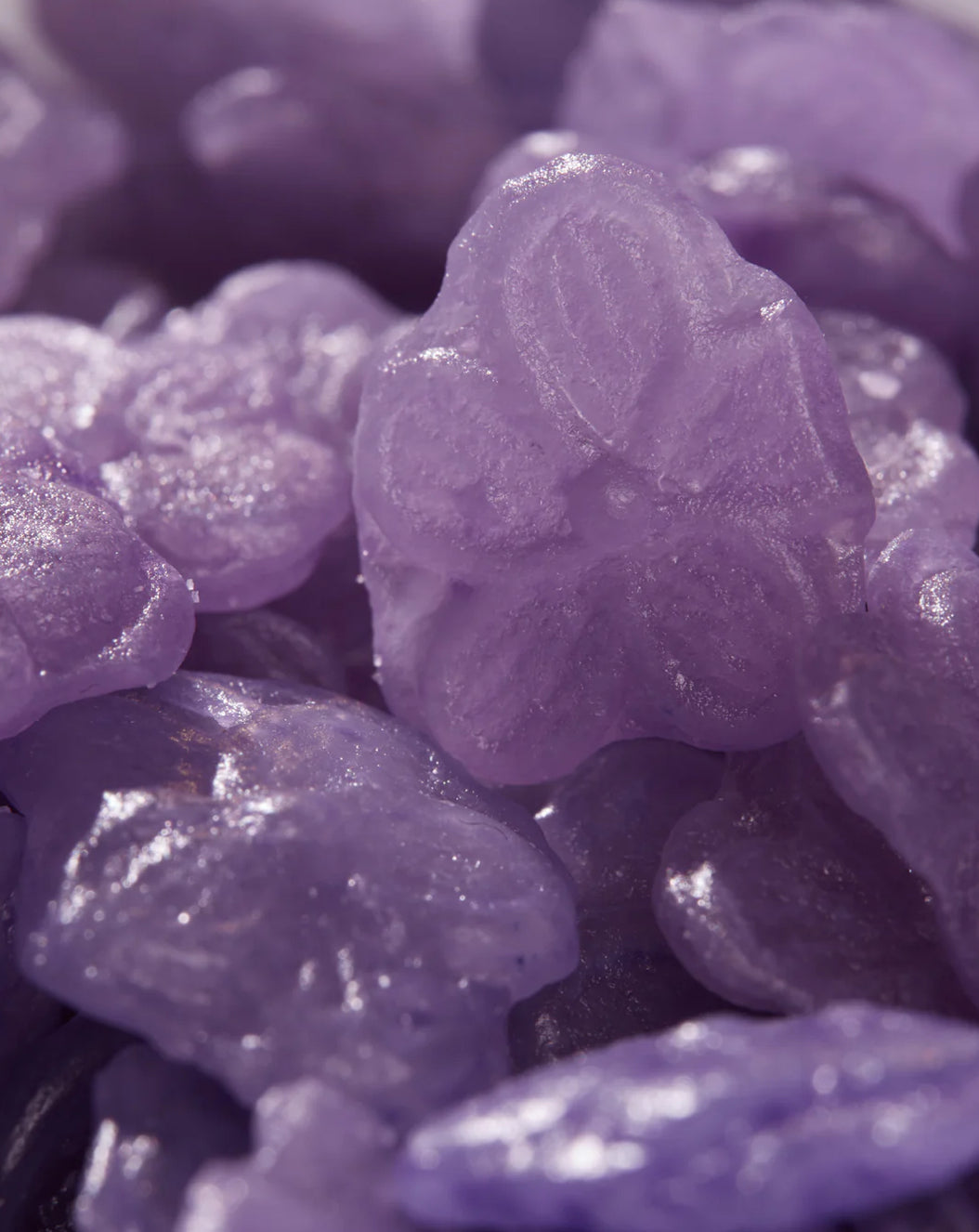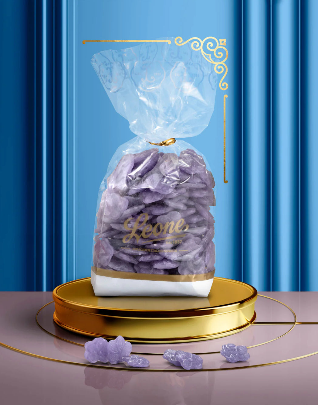 Le tradizionali drops con estratto naturale di violetta: realizzate ancora con stampi in bronzo dai mastri caramellai Leone, come una volta. Un'eccellenza dei prodotti di alta confetteria.