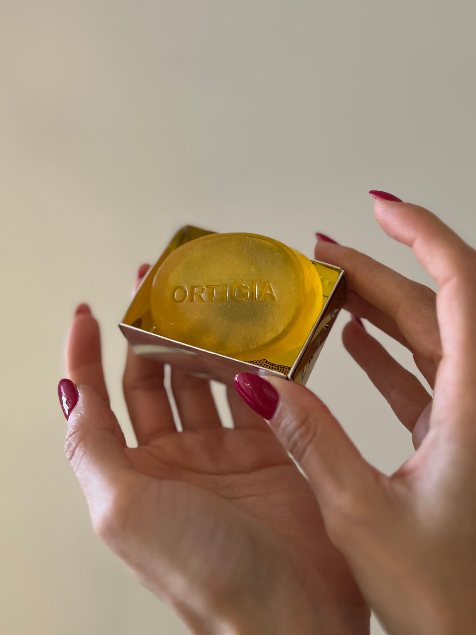 Racchiuso in una scatolina dal design unico e collezionabile firmata Ortigia, è così bello che quasi dispiace utilizzarlo: un piccolo oggetto d’arte da esporre o da regalare, che porta con sé la freschezza e l’eleganza degli aranceti siciliani.